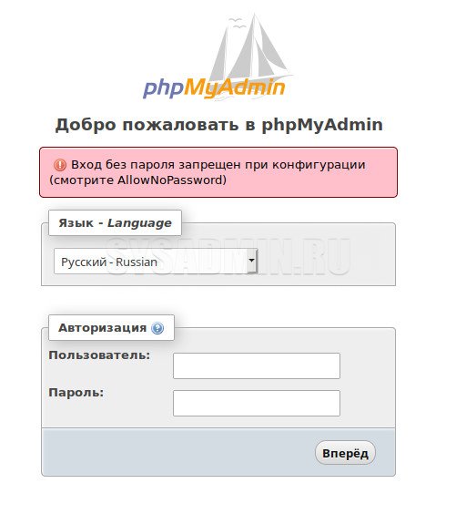 Вход в phpMyAdmin без пароля (AllowNoPassword)