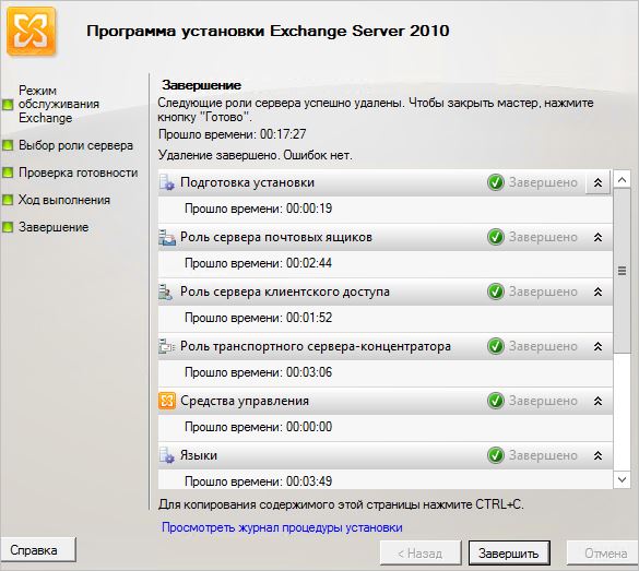После проделанных процедур можно приступать к удалению сервера Exchange.