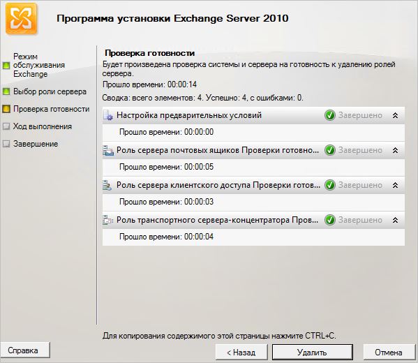 Удаление Exchange Server