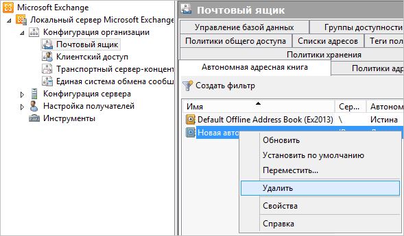 Remove-OfflineAddressBook -Identity "Автономная адресная книга"