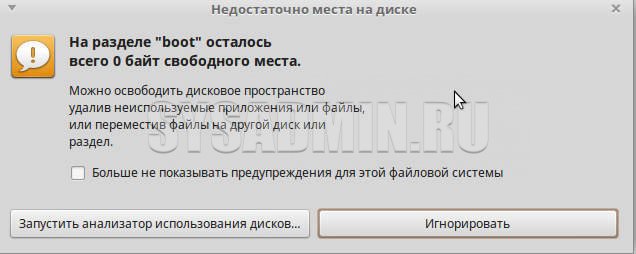 На разделе «boot» осталось всего 0 байт свободного места.