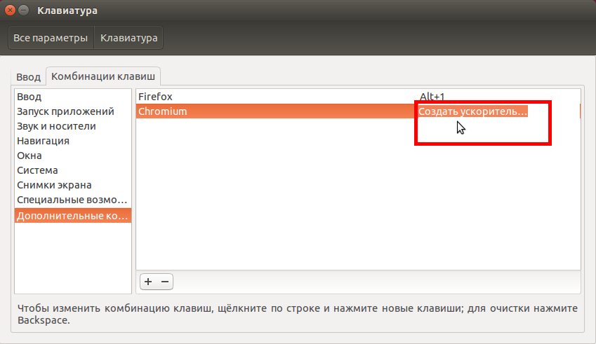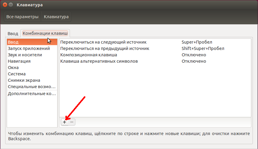 Здесь настройка сочетаний клавиш в Ubuntu раскидана по разным категориям. Вы можете как настроить дополнительные комбинации, так и изменить горячие клавиши для уже существующих действий.