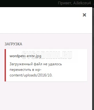 Загруженный файл не получилось переместить в wp-content/uploads…