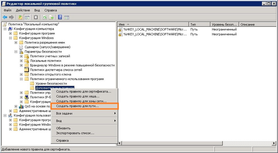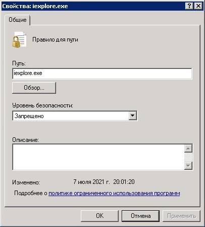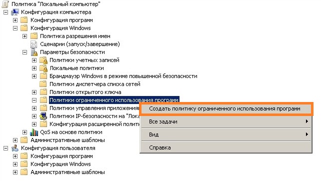 Настройка политики ограниченного использования программ