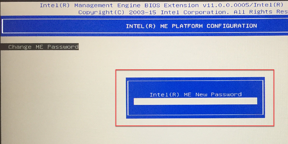 3. Укажите пароль для входа в режим Intel(R) ME (по умолчанию это admin)