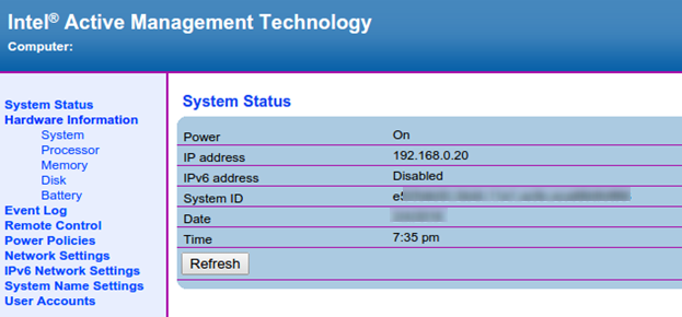 Веб-интерфейс Intel AMT доступен по адресу http://IP:16992 или https://IP:16993.
