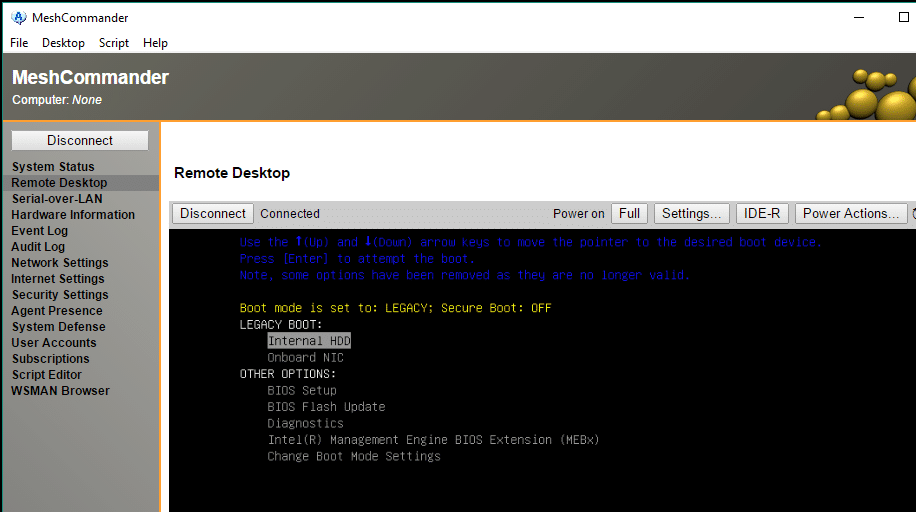 5. Итак, мы получили удаленный доступ к консоли компьютера. Теперь вы можете установить ОС, выполнить диагностику, настроить или перезагрузить компьютер пользователя.