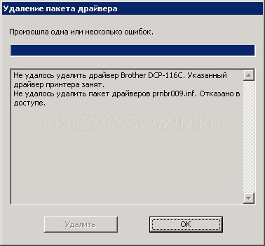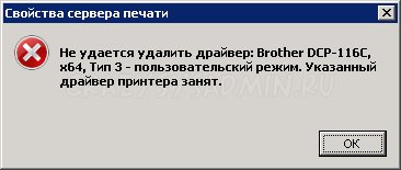 Не получается удалить драйвер: Заглавие_Драйвера, Тип 3 — пользовательский режим. Обозначенный драйвер принтера занят.