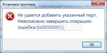 Если, при работе с принтером, созданным с помощью переадрессации портов (с использованием программы RedMon), вы получаете ошибку 0x00000001, то вас должен выручить следующий способ: