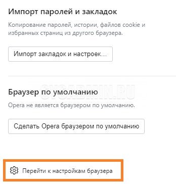 - Открываем настройки браузера, крутим в самый низ и нажимаем на «Перейти к настройкам браузера».
