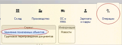 Кликаем по Операции Удаление помеченных объектов: