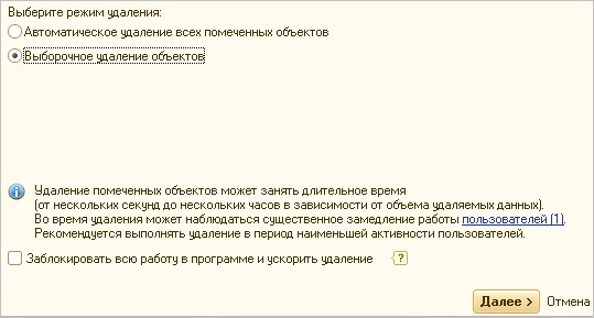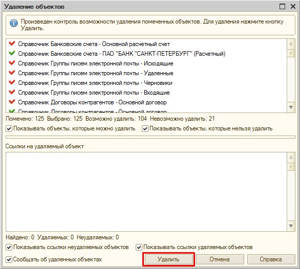 Как в 1С удалить помеченные на удаление объекты