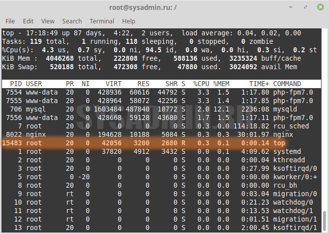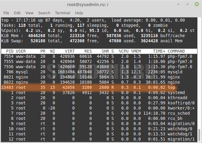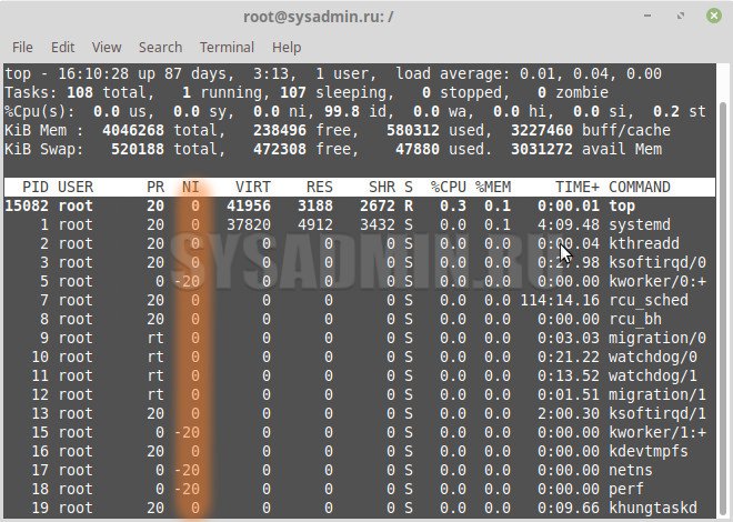 Мы изменили приоритет у существующего процесса (команда top из предыдущего примера) с 15 на 0.