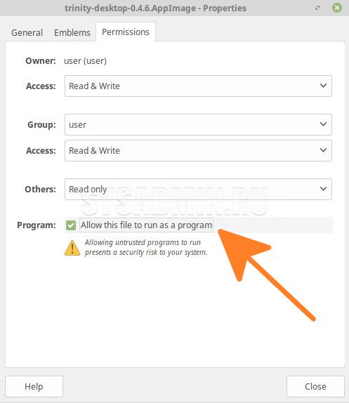 Даем права на выполнение .AppImage