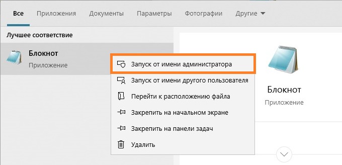 Нам необходимо запустить текстовый редактор, которым мы планируем изменять файл hosts.txt с правами администратора. Для этого необходимо проделать следующее: