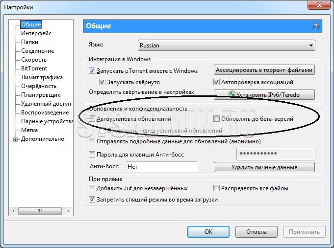 Как отключить обновление utorrent?