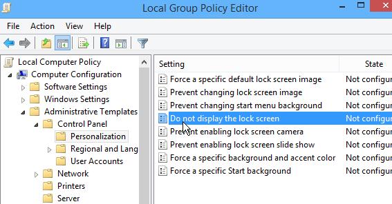 Чтобы отключить экран блокировки с помощью групповой политики, откройте редактор локальной (gpedit.msc) или доменной (если нужно изменить настройку на множестве ПК домена Active Directory) GPO и перейдите в раздел Computer Configuration -> Administrative Templates -> Control Panel -> Personalization (в русской локализации Windows 8.1 путь выглядит так: Конфигурация компьютера -> Административные шаблоны -> Панель управления -> Персонализация). В правой панели найдите политику Do not display the lock screen (Запрет отображения экрана блокировки)