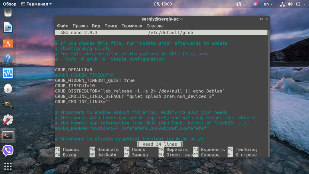 Для большинства файлов в директории /etc/ запись доступна только пользователю root. Поэтому команду надо выполнять от имени суперпользователя с помощью sudo. После нажатия клавиши Enter утилита запросит пароль. Введите его, несмотря на то, что символы пароля не отображаются, это нормально. После внесения изменений сохраните их с помощью сочетания клавиш Ctrl + O.