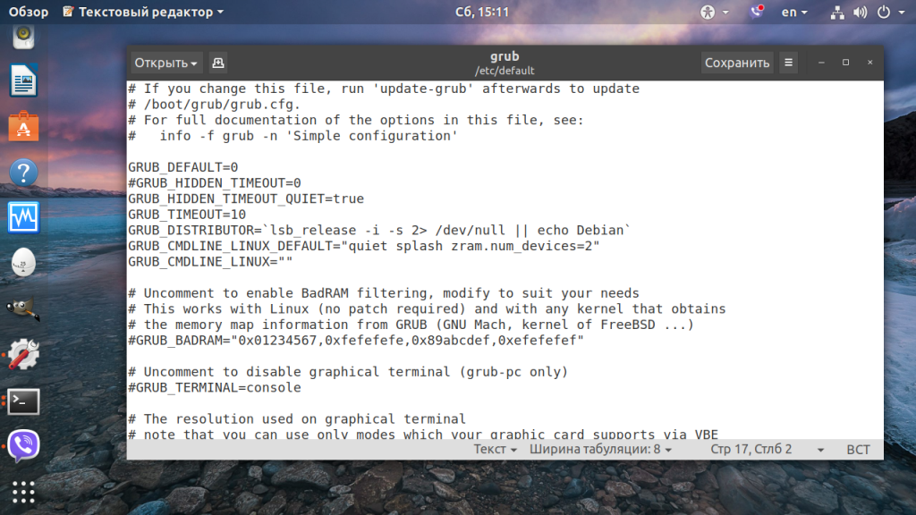 Довольно часто, обычного просмотра файла недостаточно и в нём надо что-то поправить. Для решения этой задачи cat уже не подойдёт, надо использовать текстовый редактор. В терминале можно пользоваться nano или vim, а в графическом интерфейсе — gedit. Чтобы открыть файл в терминале выполните: