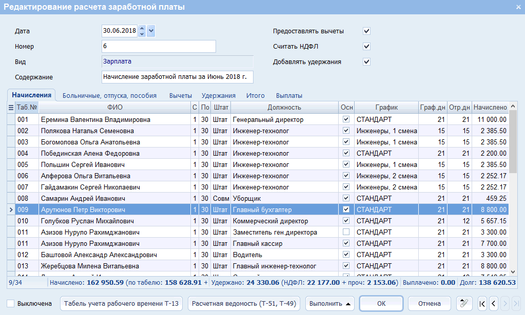 • Расчет заработной платы и налоговых платежей (НДФЛ, страховые платежи).