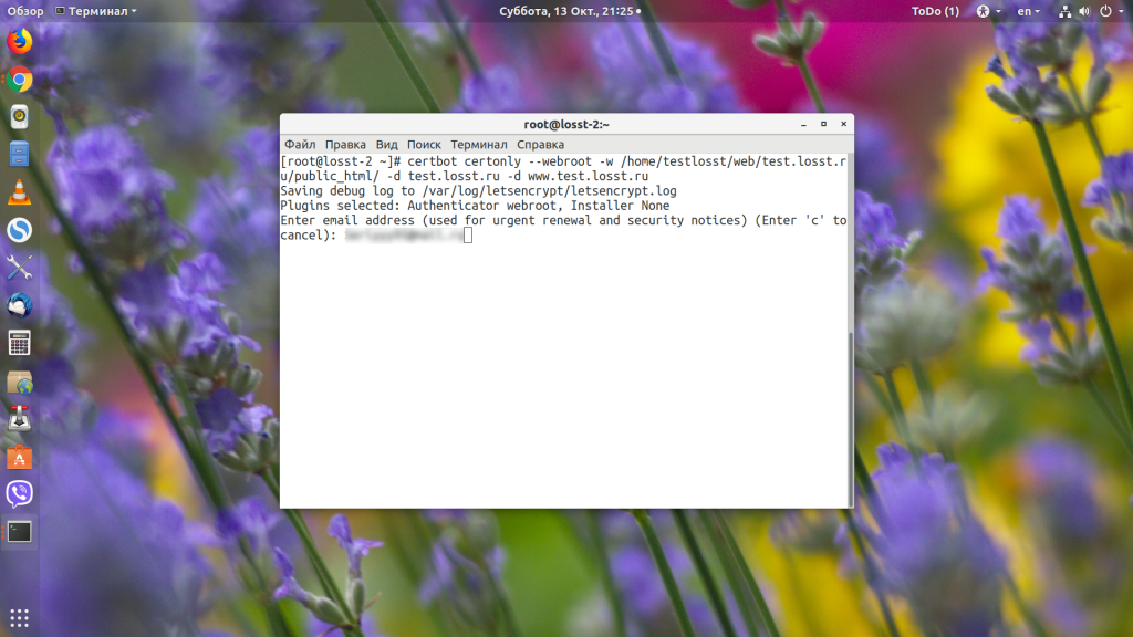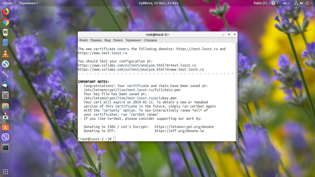 sudo certbot certonly --webroot -w /var/www/test.losst.pro -d test.losst.pro -d www.test.losst.pro