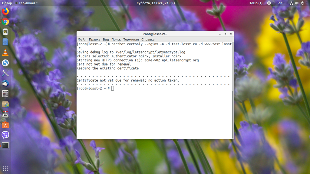 sudo certbot certonly --nginx -n -d test.losst.pro -d www.test.losst.pro