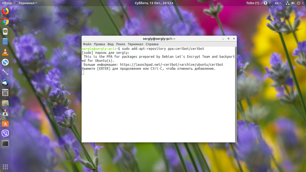 Сначала необходимо установить утилиту Certbot. Это официальный клиент, и он есть в репозиториях большинства дистрибутивов. Установка Certbot в Ubuntu выполняется из PPA: