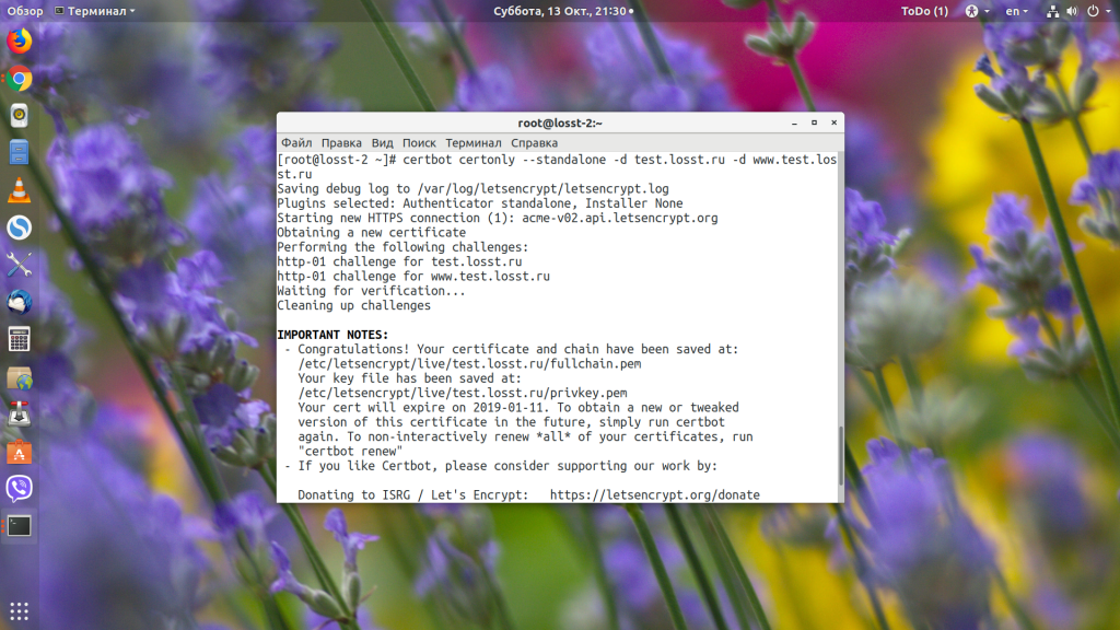 sudo certbot certonly --standalone -d test.losst.pro -d www.test.losst.pro