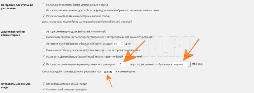 Чтоб это поменять, нужно сделать последующее. Заходим в «Опции» > «Обсуждение» и приводим опции к такому виду, как на снимке экрана ниже.