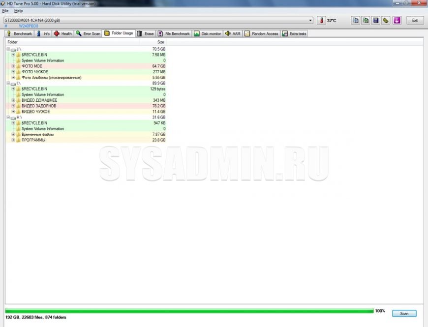 С помощью этого инструмента вы наглядно увидите, какая папка занимает на диске больше всего места. Тут все просто – в правом нижнем углу нажимайте «Scan» – и очень быстро вы найдете забытые киношки, которые сжирают весь воздух)