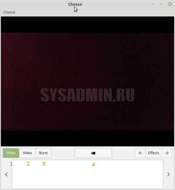 Сперва нужно скачать программку cheese. Сделать это можно последующими командами: