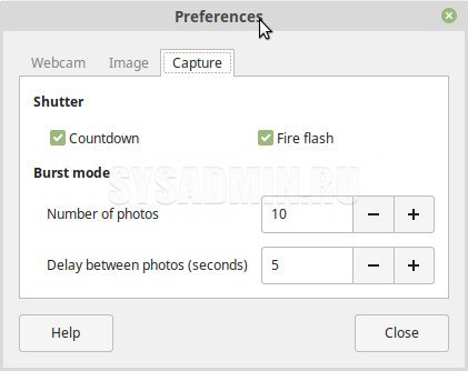 Настройки программы Cheese