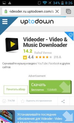 Скачать приложение можно по ссылке https://videoder.ru.uptodown.com/android