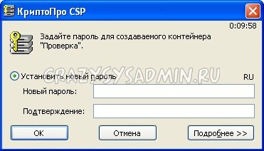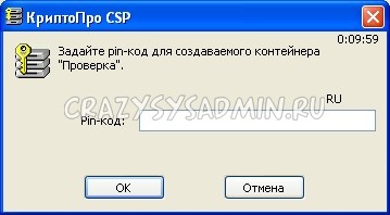 После выбора носителя, на который будет скопирован контейнер, будет предложено установить pin-код. Допускается и отсутствие pin-кода, для этого нужно просто ничего не вводить.
