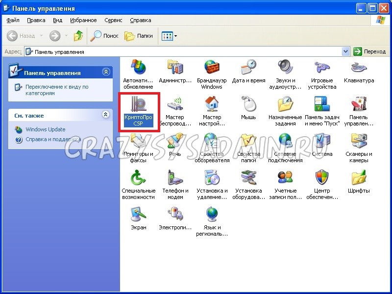 Скопировать контейнер ключа с Rutoken, или любого другого электронного носителя можно с помощью СКЗИ КриптоПро. Для этого нужно открыть Панель управления, и в ней найти КриптоПро.