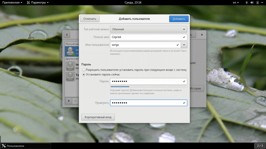 Создание нового пользователя linux в GUI
