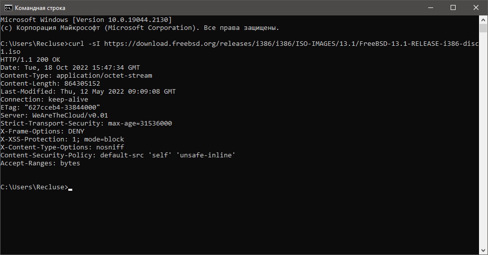 curl.exe, в противном случае будет использоваться встроенный в PowerShell командлет Invoke-WebRequest.curl -sI https://download.freebsd.org/releases/i386/i386/ISO-IMAGES/13.1/FreeBSD-13.1-RELEASE-i386-disc1.iso