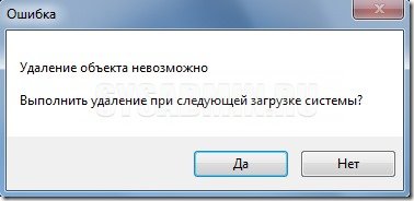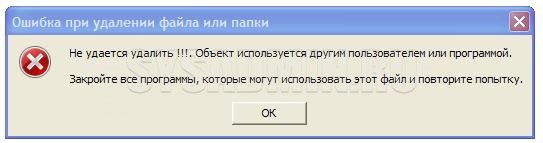При разблокировке процессов может появиться сообщение, оповещающее о невозможности удаления объекта.