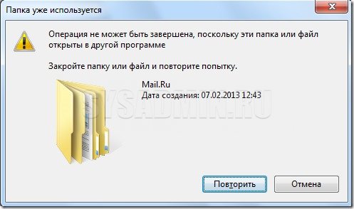 Или что-то типа “Невозможно удалить файл такой-то. Объект используется другим пользователем или программой…” Может быть еще какой-нибудь вариант отказа. Это означает, что процесс, открытый в Windows, работает с данным файлом/папкой. Например, у вас в Daemon Tools смонтирован образ какого-нибудь диска, а вы его хотите удалить. Естественно, вам это сделать не дадут, потому что нужно завершить процесс, отвечающий за Daemon Tools, а потом уже удалять файл. Но, допустим, вы не знаете, какой процесс отвечает за удаляемый объект и искать особого желания нет. Тогда к вашим услугам утилита Unlocker.