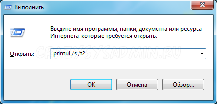 Теперь покончим с драйвером принтера, для этого идем ПускВсе программыСтандартные и нажимаем на строчке Выполнить. открывается окно в котором необходимо вписать printui /s /t2 и нажать на кнопку ОК.