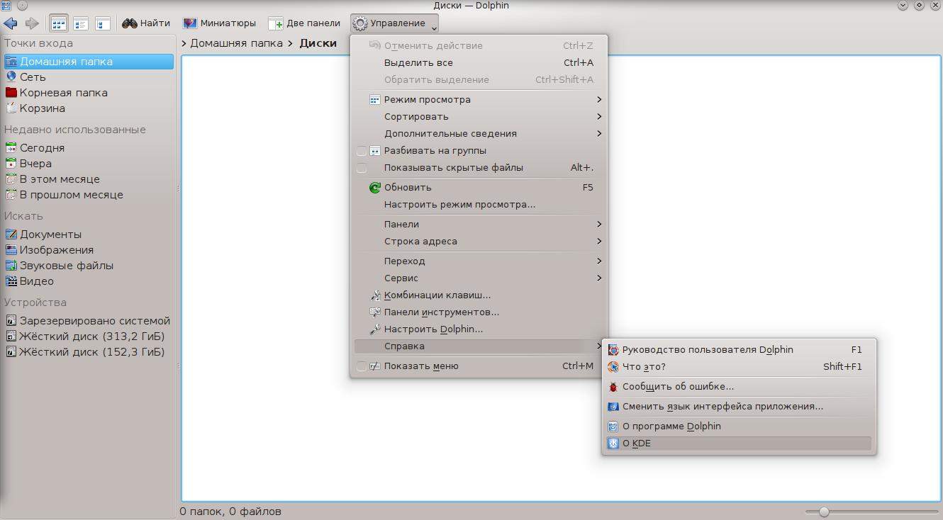 Самый простой способ — откройте любое приложение из стандартного набора KDE, например, Dolphin, Konsole и т д. Найдите в главном меню пункт справка: