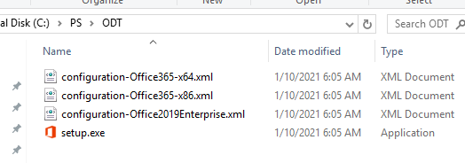Скачайте и установите officedeploymenttool. В каталоге установки появятся примеры XML файлы для настройки параметров установки пакетов Office 365 и Office 2019 Enterprise, а также установочный файл C2R – setup.exe.