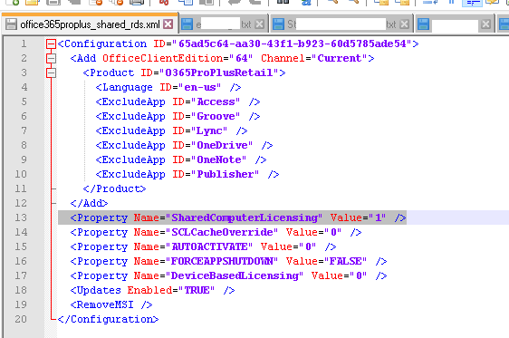 Сохраните полученный XML файл как office365proplus_shared_rds.xml и откройте его в любом текстовом редакторе.