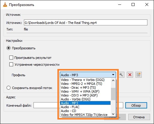 Использование возможностей конвертирования в VLC