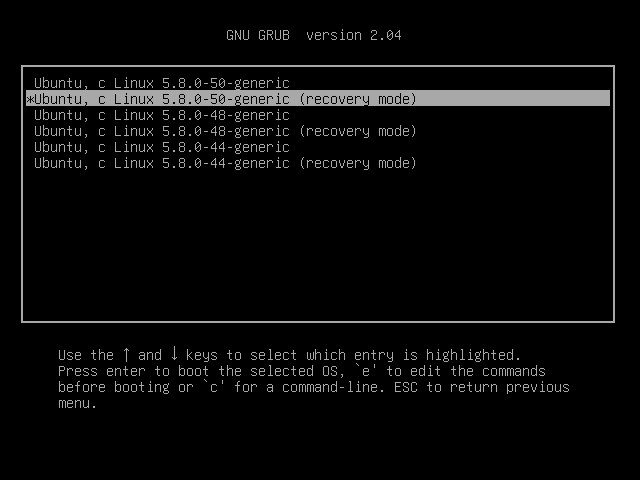 Загрузка в режим восстановления через меню Grub