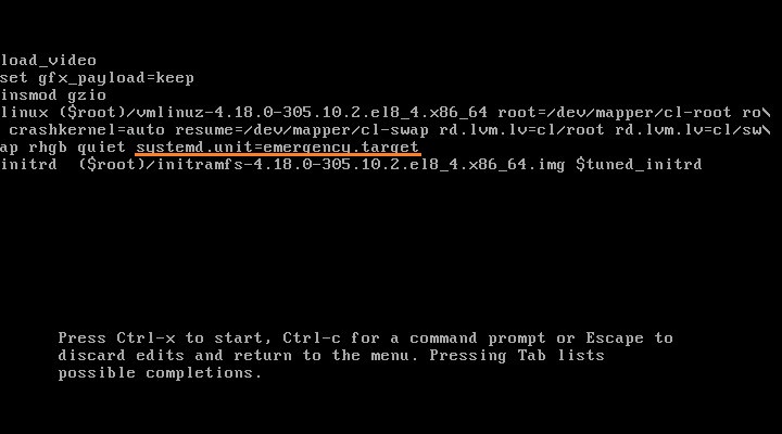 linux, после чего перейти в её конец — сделать это проще всего с помощью клавиши End или комбинации клавиш Ctrl + E. Затем, в эту строку следует вписать вписатьsystemd.unit=emergency.target.