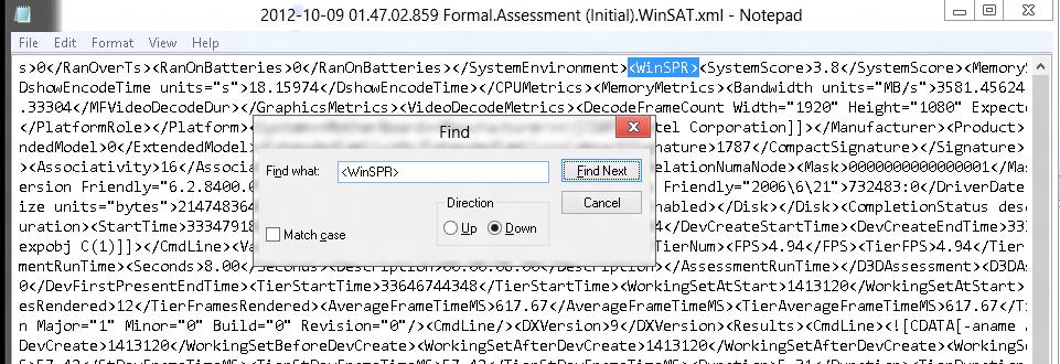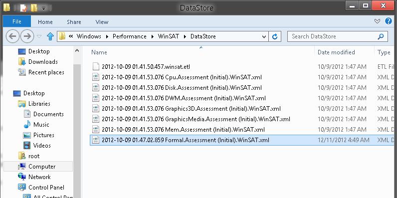 - Найдите в каталоге DataStore файл, имя которого заканчивается на Formal.Assessment (Initial).WinSAT.xml