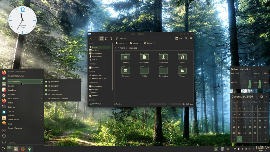 Ещё одна тема от L4k1 для KDE Plasma. Она олицетворяет собой ночь, и непременно понравится любителям тёмного интерфейса и синих оттенков. В комплекте есть пять вариантов обоев на выбор (в том числе HD 4K), иконки, цветовая схема, фон для экрана авторизации и заставка. Если установить скрипт Force Blur для KWin, некоторые элементы интерфейса станут полупрозрачными.