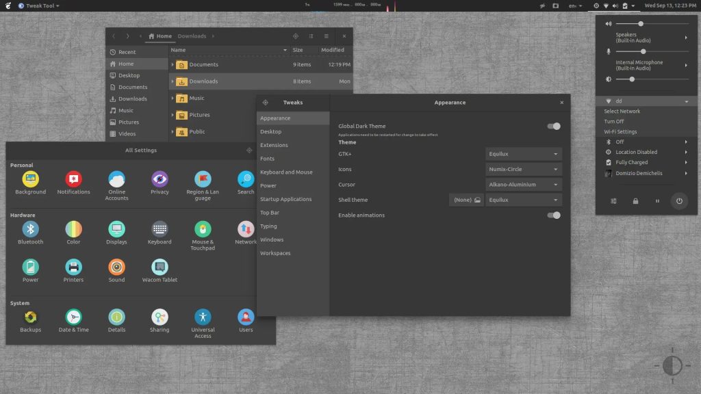 Equilux порадует вас приятной темой в ненавязчиво темных тонах. Эта тема очень хорошо сочетается с GNOME и его форками. По сути, тут больше и добавить нечего. Простая и элегантная тема.