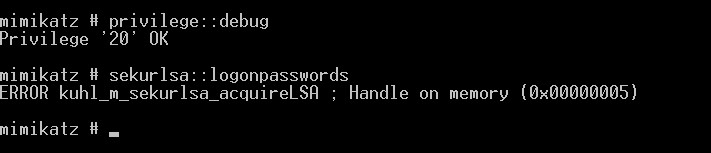 ERROR kuhl_m_securlsa_acquireLSA : Handle on memory (0x00000005).